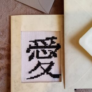 Biglietto ideogramma cinese ricamato a punto croce 愛 aì Amore – cartolina con simbolo cinese